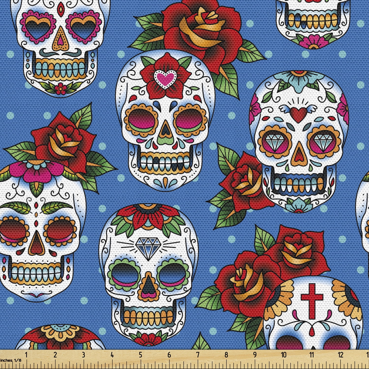 Sugar Skull Sofa Upholstery Fabric By The Yard Retro Style Mexican Cultural Pattern On Polka Dots Rose Bouquets Skeletons Decorative Fabric For Diy Home Accents 1 Yard Multicolor By Ambesonne